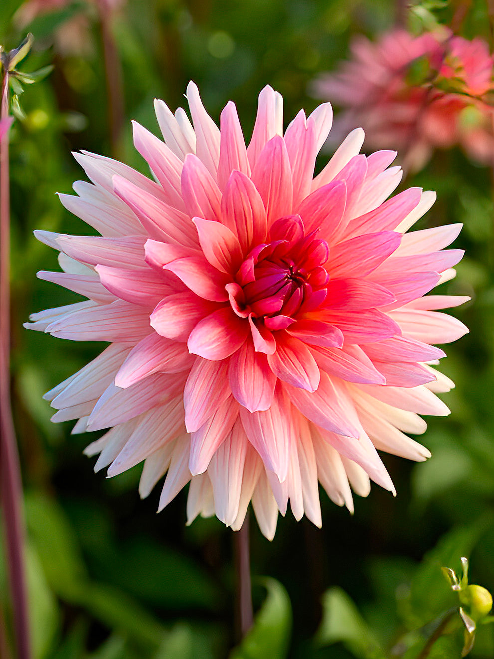 Dahlia ‘Schneckenstein’ är en elegant dekorativ dahlia med stora, välformade blommor i varmt rosaröda toner. Kronbladen har en lätt snurrad form som ger blomman ett mjukt, levande uttryck. Färgen skiftar mellan hallonrosa och en djupare röd nyans, vilket gör den till ett vackert blickfång i både rabatten och buketten.