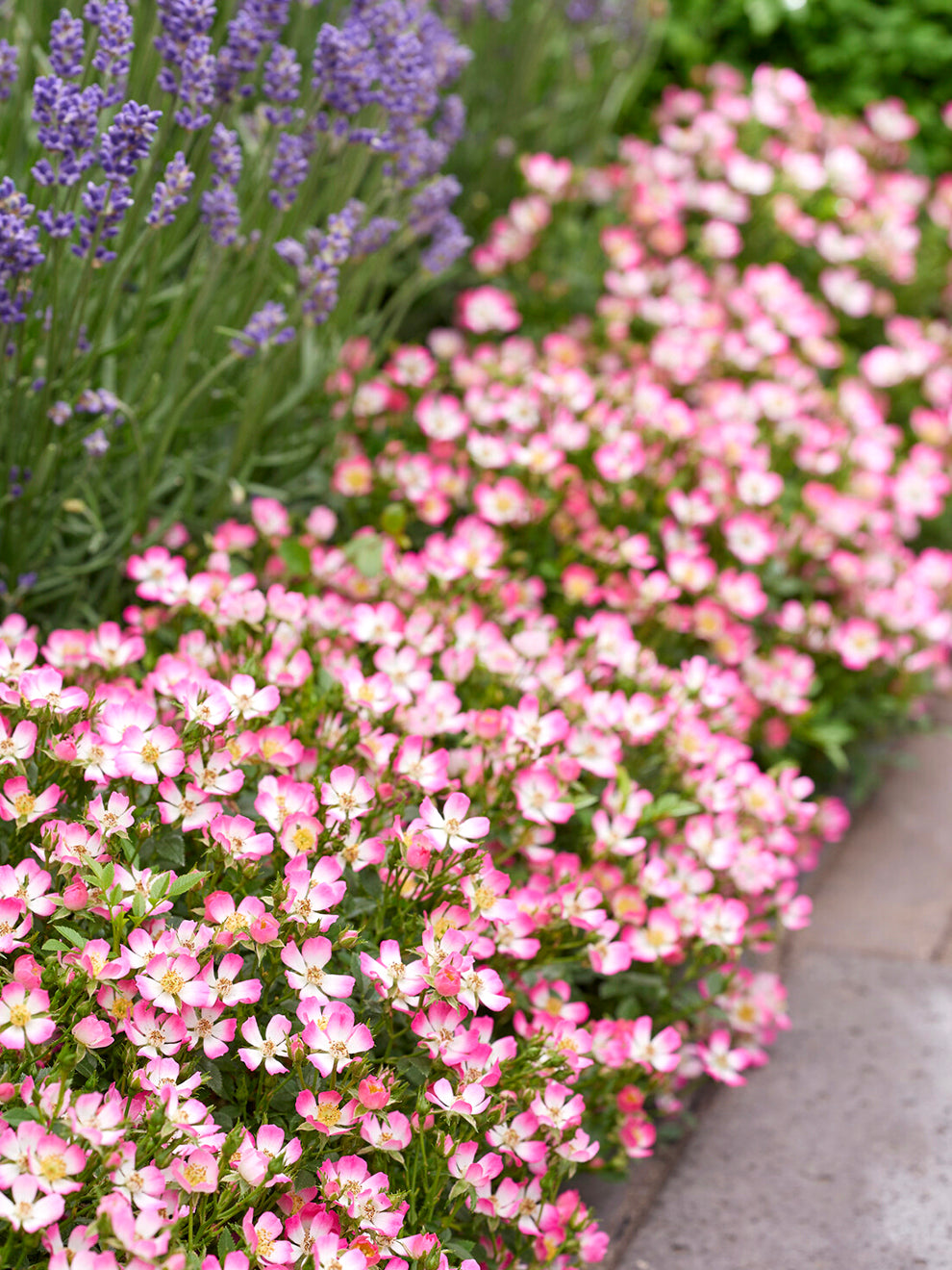 Rosa ’Cutie Pie’, en kompakt, fritt blommande miniatyrros som är lika förtjusande som namnet antyder. Täckt av massor av små, enstaka blommor i mjukt rosa med vita mitten och gyllene ståndare, ger den en glad, romantisk touch från tidig sommar ända fram till hösten.